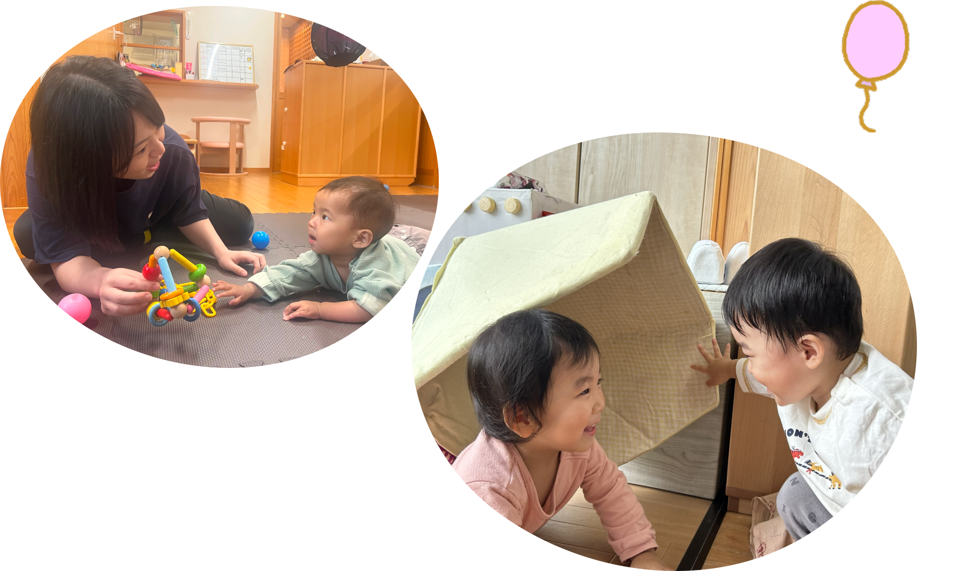 その子らしさを大切にし、安心して自分の思いを表現してのびのびと生活できる、お家にいるような環境づくりを心がけています。0歳から2歳までの合同保育による異年齢交流によって、子どもたちは豊かな心身の成長を見せてくれます。