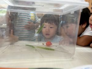 また、園庭で見つけたバッタを虫かごに入れて観察した時のこと。