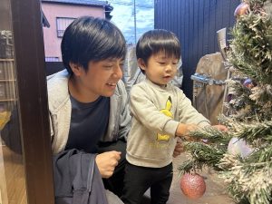 大坪園には雪の積もったツリーがあり、飾り付けはお家の人と一緒に行いました🎵
