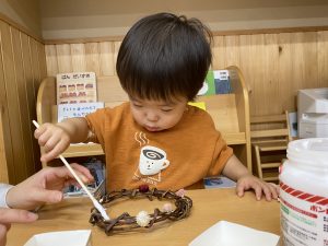 園でもツリーの飾り付けやリース作りなどをして、クリスマスの雰囲気を楽しみ始めています。