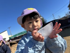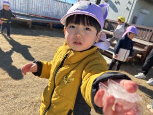 登園時や降園時には、「明日、氷できるかな?」「氷遊びできるかな?」と氷遊びをする日を楽しみにする子どもたち🌟