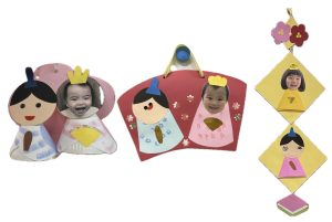 1歳児クラスでは、顔をシールで作り、 お着物にはお花型の綿棒スタンプで模様をつけました🌼