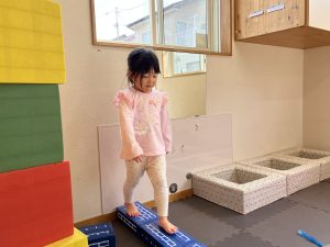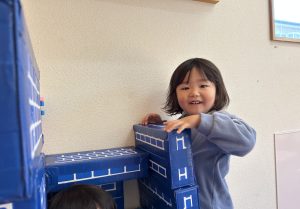 遊びを重ねていく中で、お家を作ったり、塀のように並べたりと