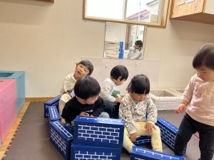 最近、子どもたちはレンガブロックでの遊びに夢中になっています。